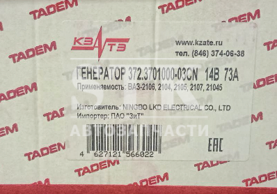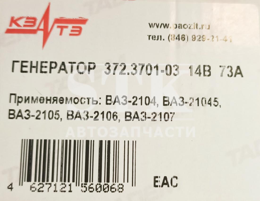 КЗАТЭ ГЕНЕРАТОР 372.3701-03CN Линейка CN пр-во ЗиТ, Кзатэ ВАЗ-2104-2107, ВАЗ-21045, 14V\73A с инж.дв. (выпуск а/м после 10.04.2007г. Артикул 037702 4 242 руб. Количество В корзину
