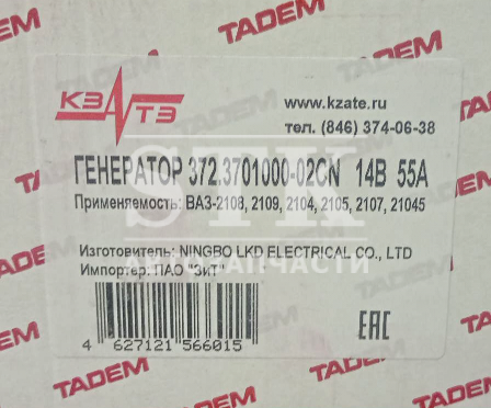 КЗАТЭ Генератор Г372.3701-02 а\м ВАЗ-2108, 2109, 1111 - 14V/55A пр-во ЗИТ, КзатЭ г. самара Артикул 030003 5 337 руб. Количество В корзину