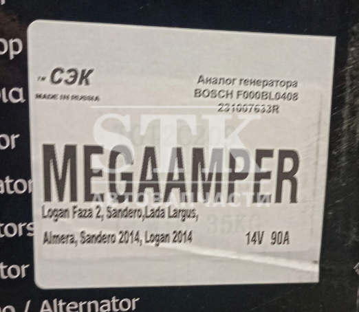 Китай Генератор Лада Largus - Renault Logan, Sandero, Duster 1.4i, 1.6i дв K4M, K7M 95A, ALB0408, 231007633R, LG0901 пр-во Megaamper Артикул 010058-1 6 992 руб. Количество Товар не доступен