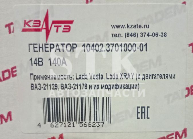 КЗАТЭ Генератор 10402.370100-01 а\м Lada Vesta, Lada X-Ray 14V, 140A с дв. Ваз 21219, 21179 и их модификации пр-во Кзатэ, Зит Артикул 035061 8 736 руб. Количество В корзину